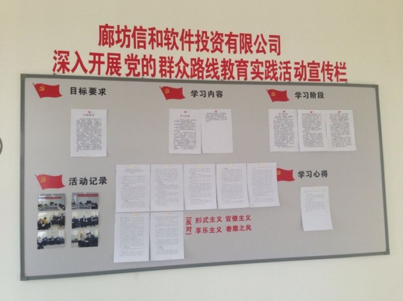 廊坊公司按照集團公司黨委的部署,迅速、扎實推進黨的群眾路線教育實踐活動。繼2014年2月20日召開黨的群眾路線活動動員大會后,廊坊公司相繼召開了領導小組調度會、班子成員集中學習培訓會、全體員工觀看宣傳教育片等活動。為了實現教育實踐活動的生動性和有效性,廊坊公司不斷創新活動載體,豐富學習形式,構建多層次的學習平臺。除了完成好規定動作外,廊坊公司因地制宜抓好“自選動作”,包括建立群眾實踐活動QQ群、微信圈、制定簡報,并精心制作了群眾路線活動墻面板報,將有關活動內容進行展覽宣傳,時刻提醒大家嚴明守紀,嚴格落實中央“八項規定”精神和省委相關規定,反對搞形式、走過場,將一切工作做到實事求是。