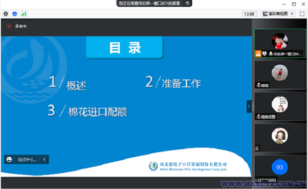 2022年8月8日,河北“單一窗口”上線棉花進(jìn)口配額管理系統(tǒng),為減少企業(yè)配額申請時(shí)間,促進(jìn)貿(mào)易便利化,8月18日,省電子口岸公司組織了河北“單一窗口”棉花進(jìn)口配額申請系統(tǒng)(關(guān)稅配額)線上培訓(xùn)。